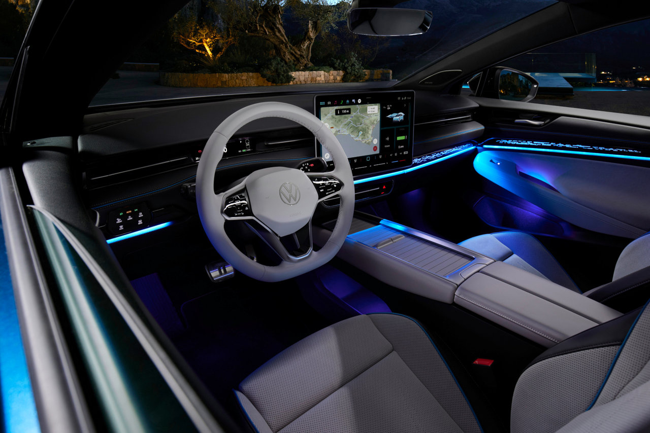 La nouvelle Volkswagen ID.7 2025 aura pour objectif d'offrir une expérience luxueuse et raffinée à ses propriétaires. L'intérieur est doté d'un grand écran central de 15 pouces et d'un design général très élégant. On remarque aussi immédiatement la finesse de l'instrumentation numérique, qui s'inscrit dans la continuité de la ligne générale du tableau de bord, lequel intègre également un système de climatisation avancé. La technologie utilise des moteurs électriques pour distribuer efficacement le flux d'air dans l'habitacle afin de rafraîchir ou de réchauffer les passagers plus efficacement que n'importe quel autre véhicule électrique sur le marché.